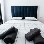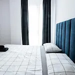 ベッドルーム1室のModern And Central Apartment ティミショアラはテラスがあり、Parcul Rozelorから徒歩で5分の場所に位置しています。 ビジネスとレジャーの両方でWiFiを利用することができます。